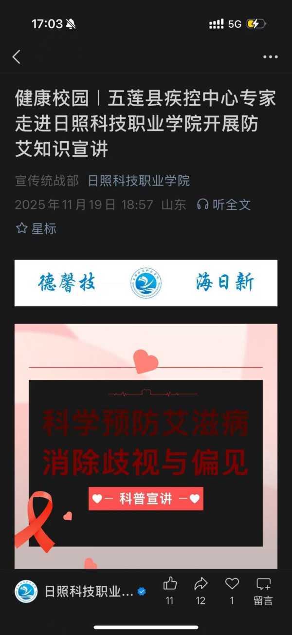 本文来自:日照科技职业学院防艾活动线下活动投稿